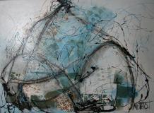 Avec un petit groupe d’artistes de ma région, on organise des ateliers de modèles vivants. C’est ainsi que j’introduis des personnages dans mes abstractions fantaisistes. Proportions et beauté sont absentes, seule la féminité transperce, l’émotion et le regard. Rien de défini, on imagine, on devine et on conclut.